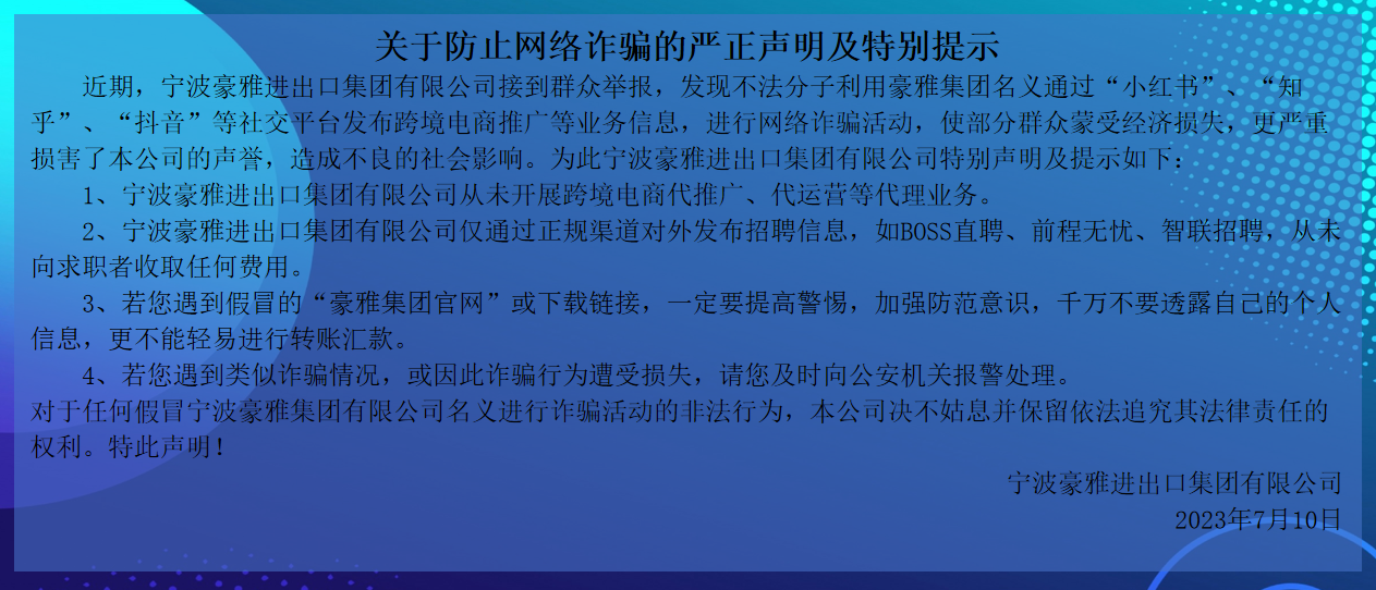 公司积极推动校企合作,建立起了稳定的跨境电商人才培养和输送基地,并依托“豪雅商学院”的培训体系和“Hao+”文化体系建设,持续不断的培养和孵化出专业化复合型的跨境电商人才。